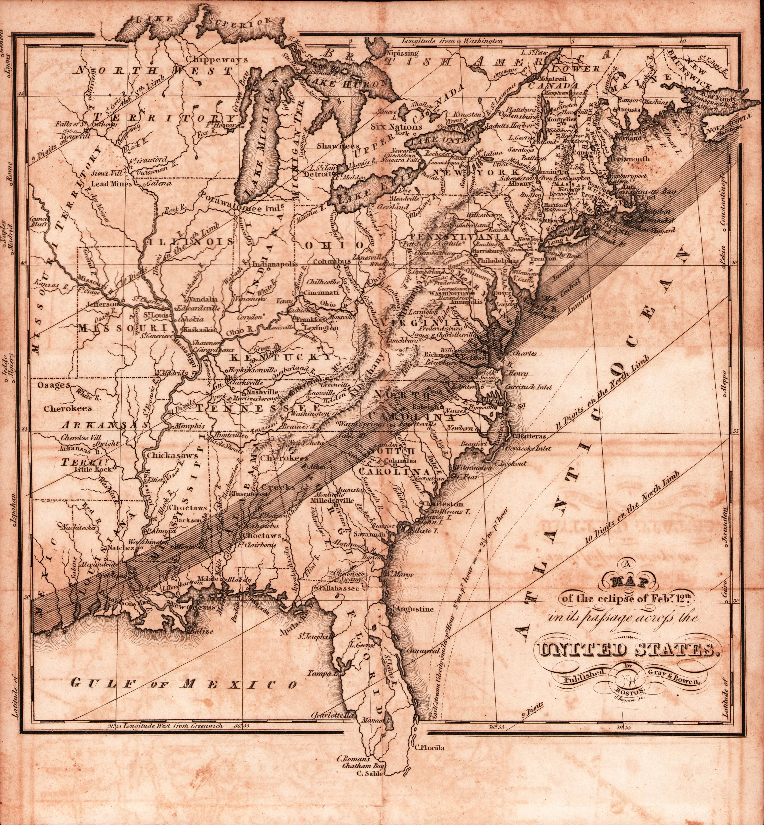 Gray & Bowen A Map of the eclipse of Feby 12th in its passage across the United States American Almanac and Repository of Useful Information for the year 1831. Collection of Michael Zeiler