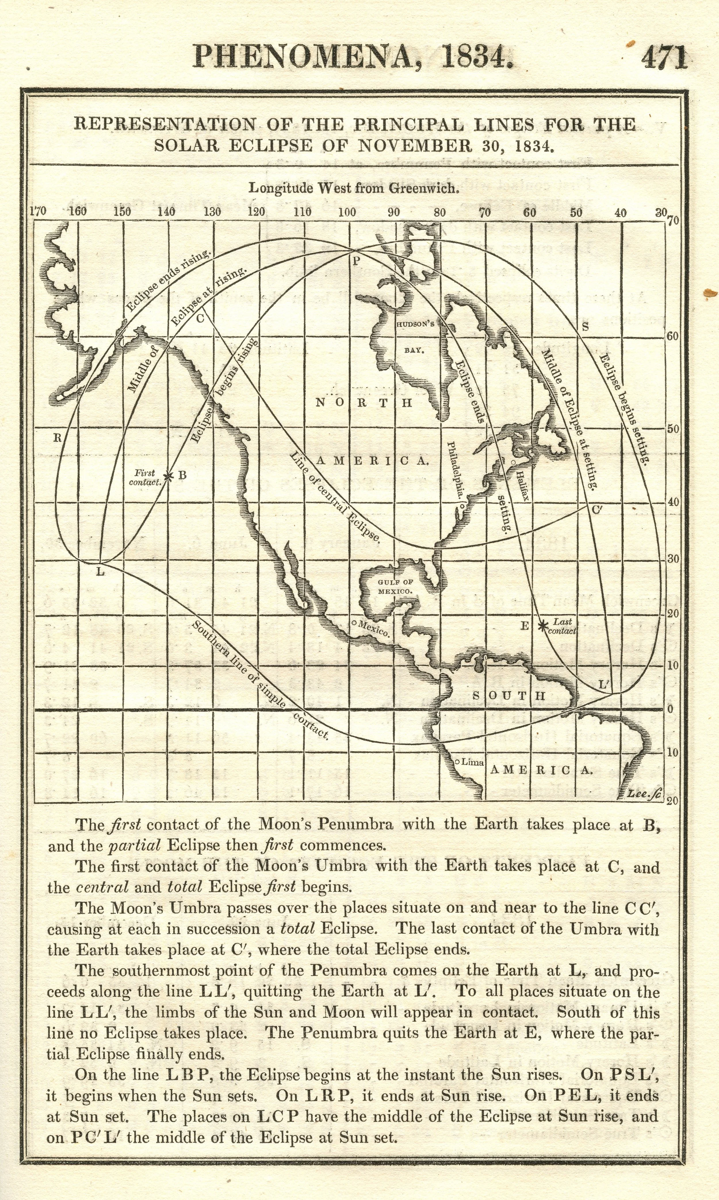 The Nautical Almanac and Astronomical Ephemeris Representation of the principal lines for the solar eclipse of November 30, 1834 Scanned at Federal Repository Library, UC Berkeley