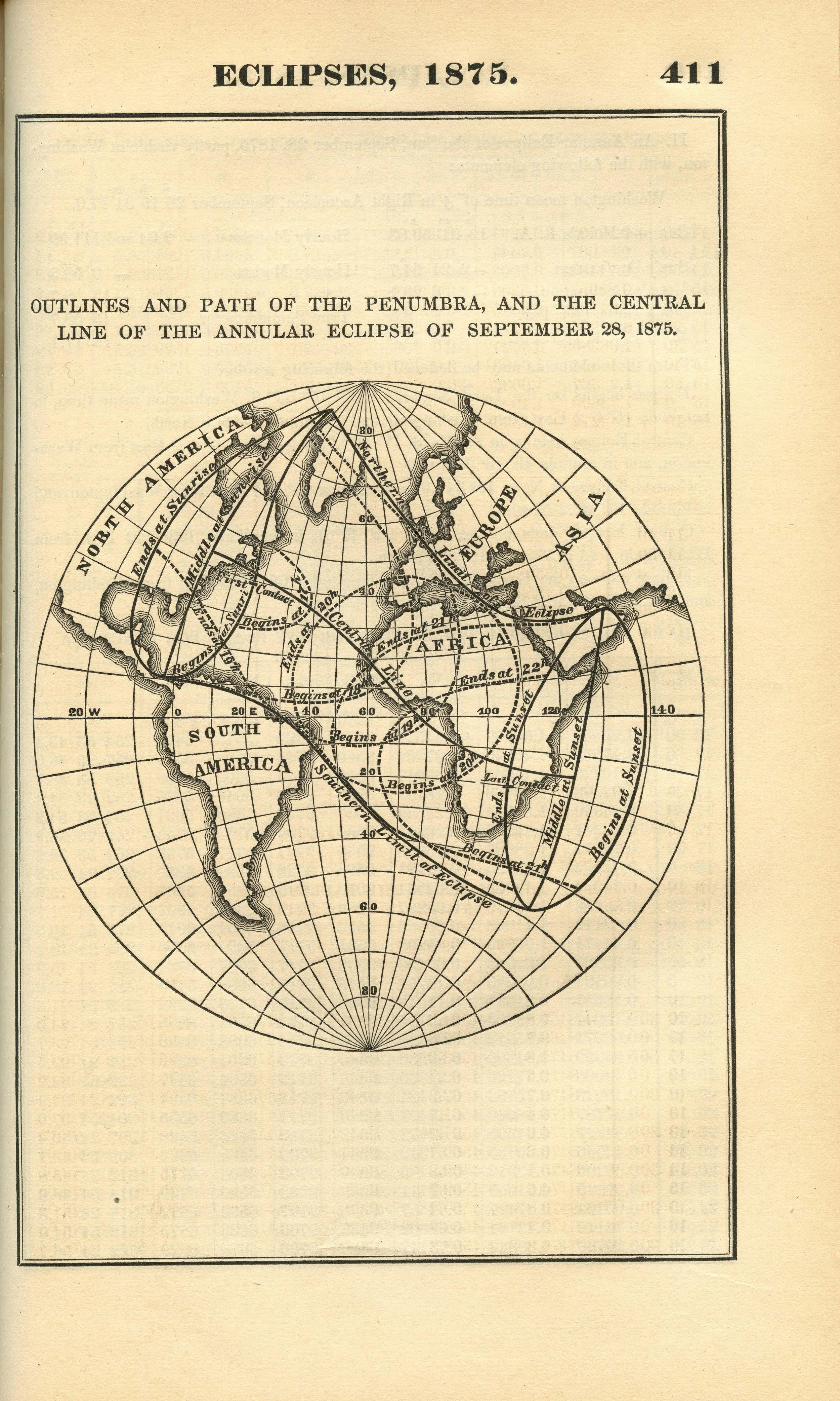 American Ephemeris and Nautical Almanac Outlines and Path of the Penumbra, and the Central Line of the Annular Eclipse of September 28, 1875. Scanned at Federal Repository Library, UC Berkeley