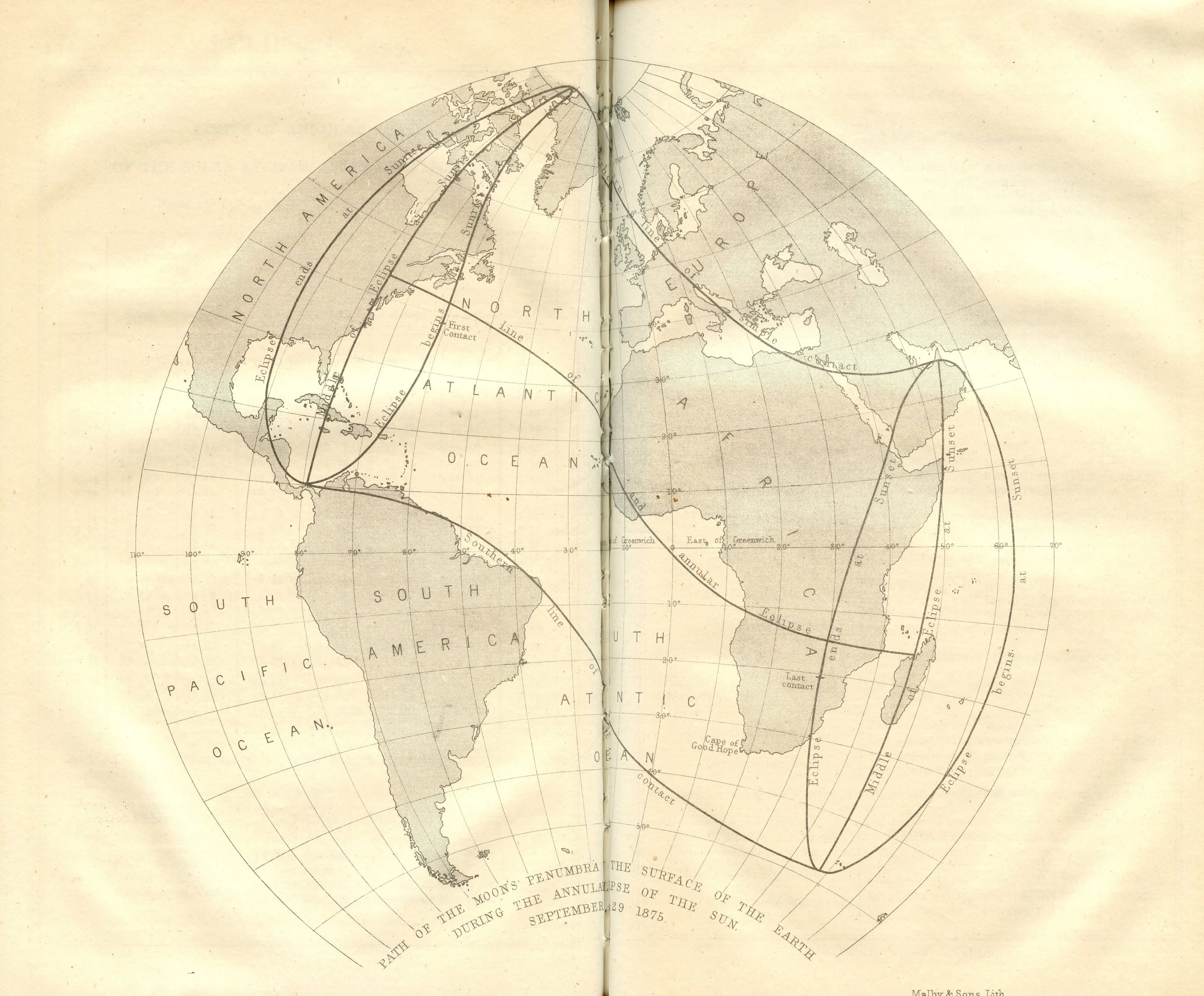 The Nautical Almanac and Astronomical Ephemeris Path of the Moon’s Penumbra upon the Surface of the Earth during the Annular Eclipse of the Sun, September 29, 1875. Scanned at Federal Repository Library, UC Berkeley