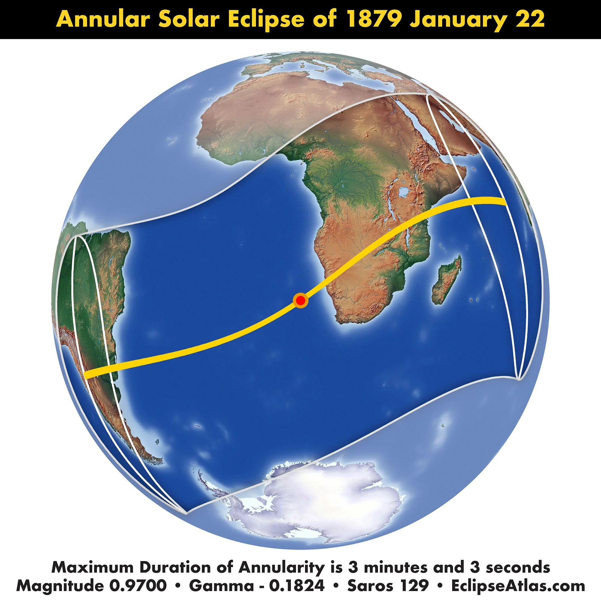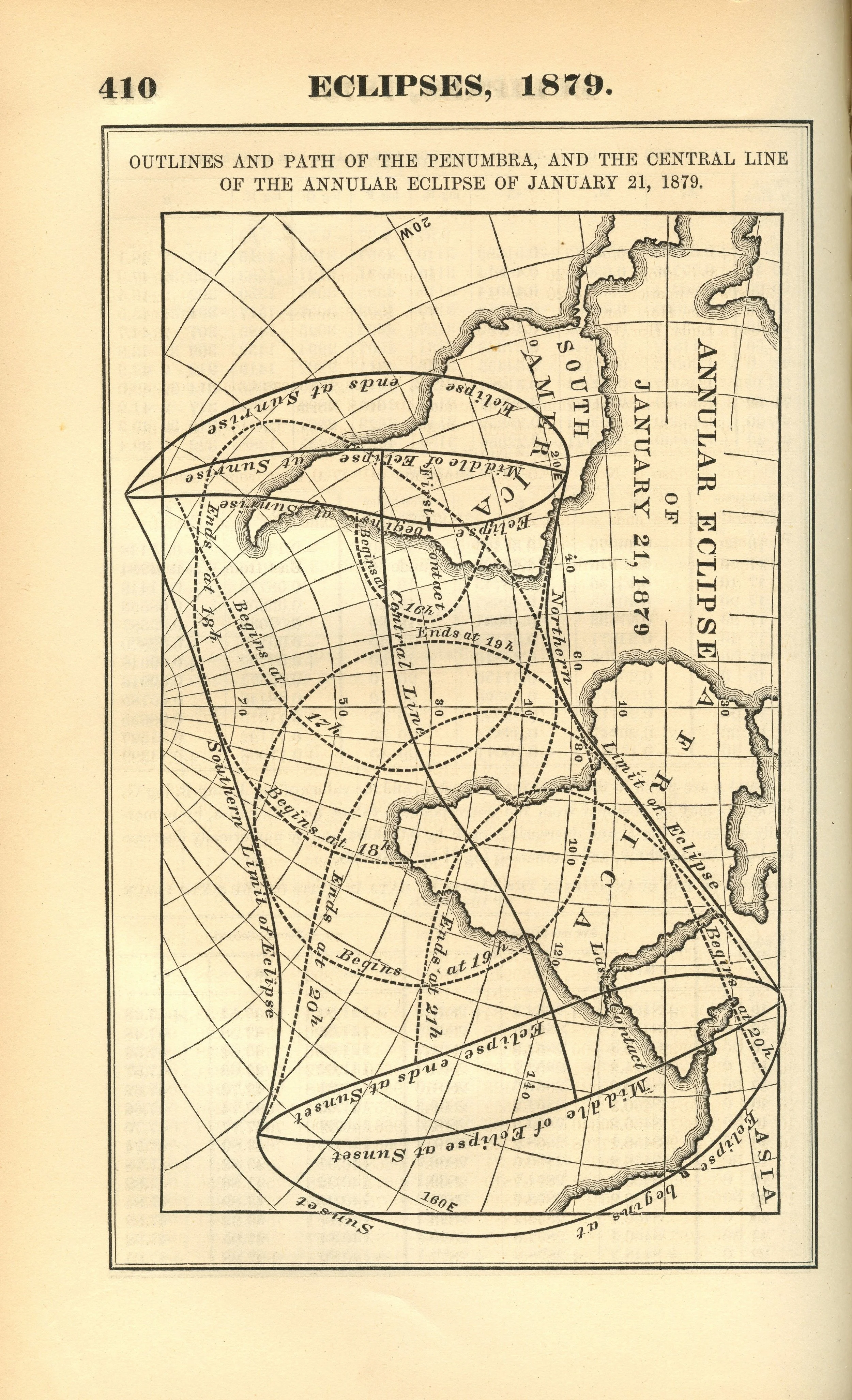 American Ephemeris and Nautical Almanac Outlines and Path of the Penumbra, and the Central Line of the Annular Eclipse of January 21, 1879. Scanned at Federal Repository Library, UC Berkeley