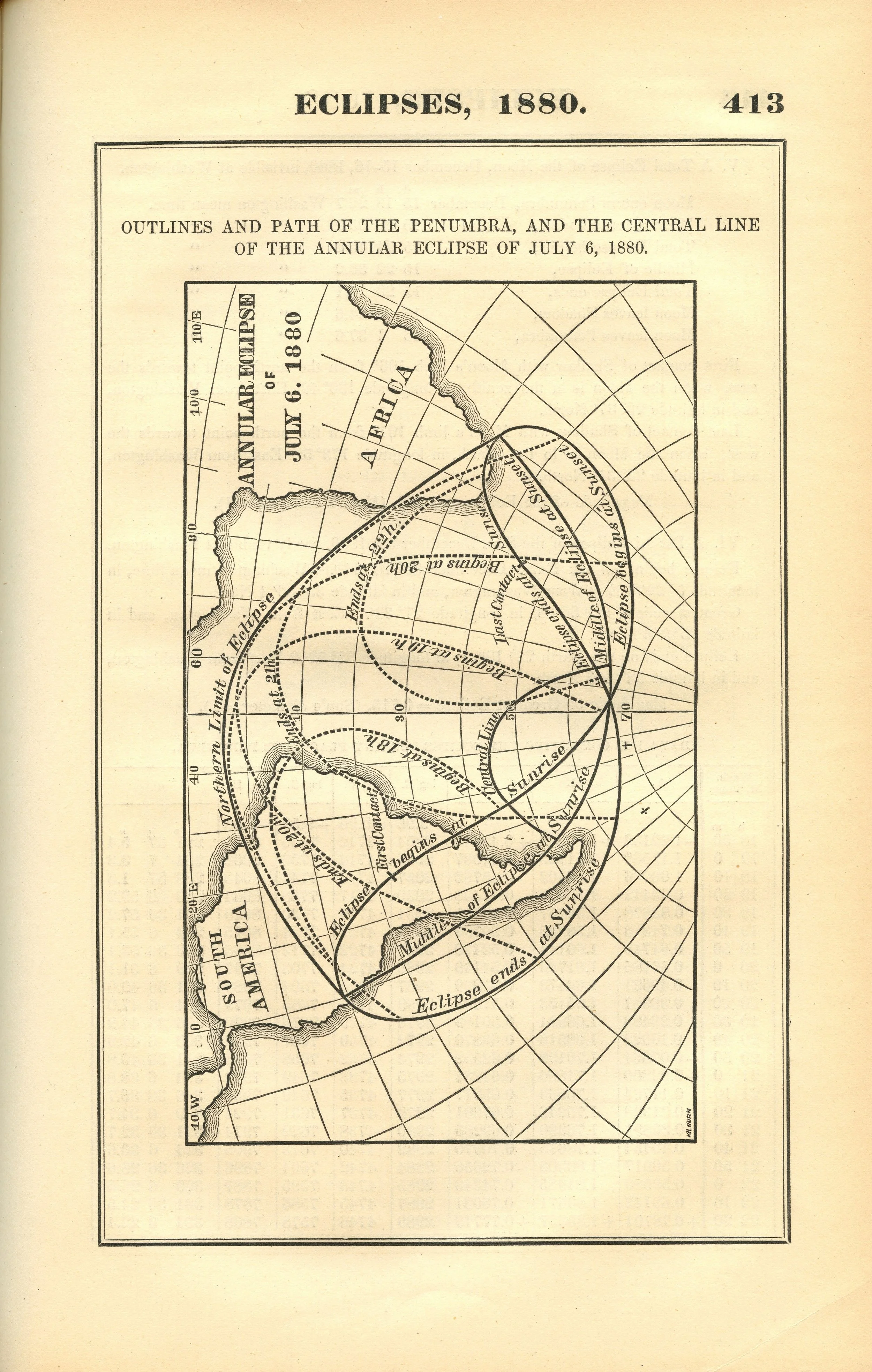 American Ephemeris and Nautical Almanac Outlines and Path of the Penumbra, and the Central Line of the Annular Eclipse of July 6, 1880. Scanned at Federal Repository Library, UC Berkeley