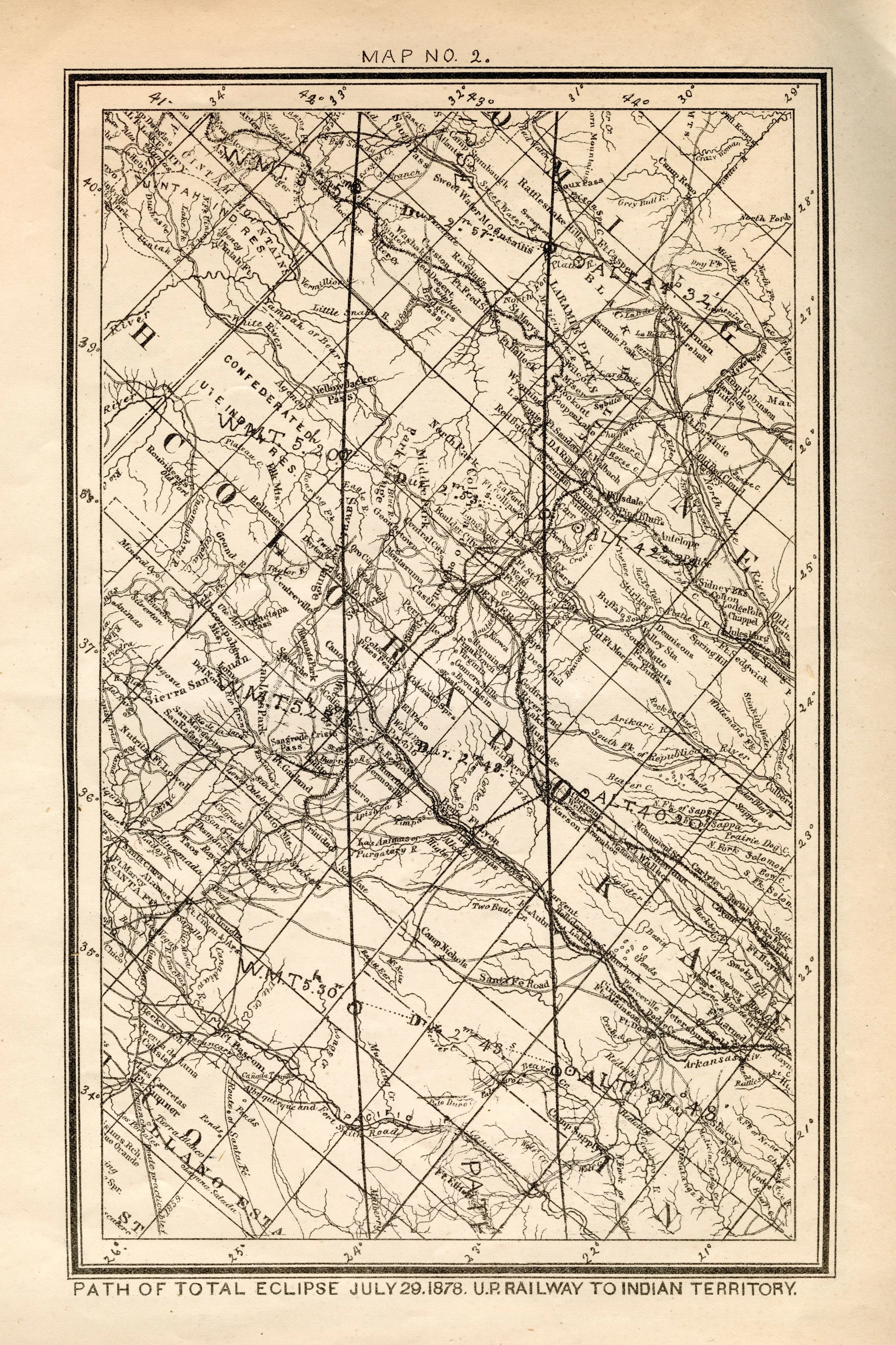 Simon Newcomb Path of Total Eclipse July 29, 1878. Northern Boundary to U.P. Railway Scanned at USNO James Melville Gillis Library