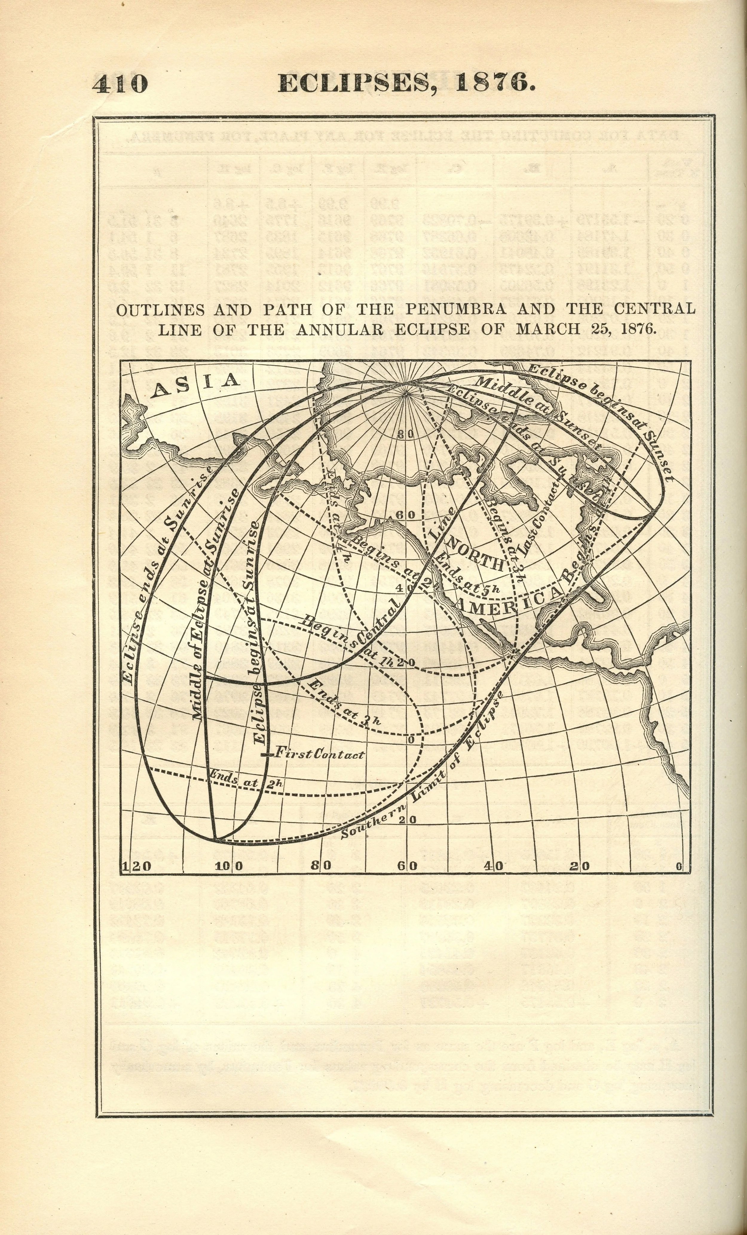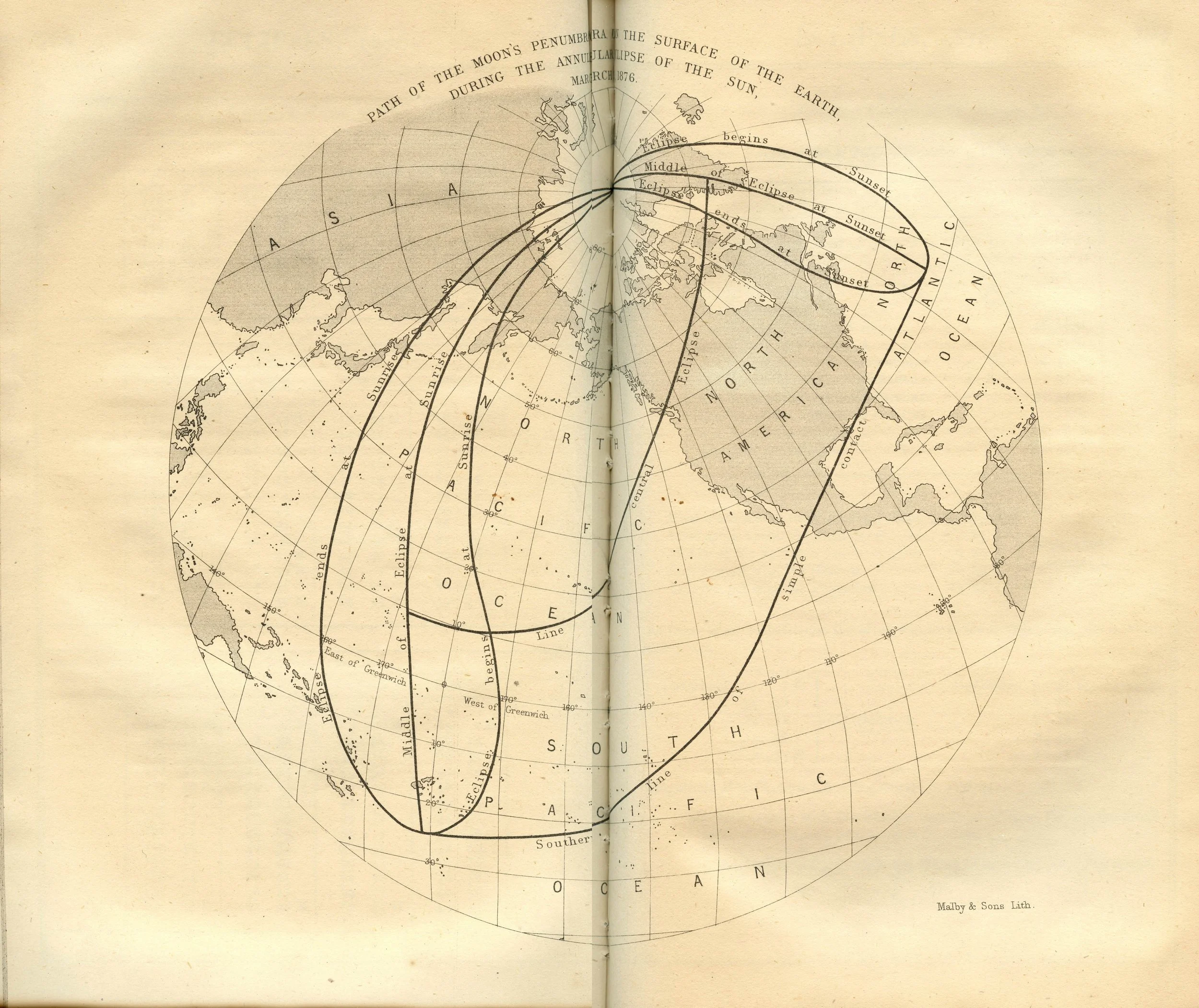 The Nautical Almanac and Astronomical Ephemeris Path of the Moon’s Penumbra upon the Surface of the Earth during the Annular Eclipse of the Sun, March 25, 1876. Scanned at Federal Repository Library, UC Berkeley