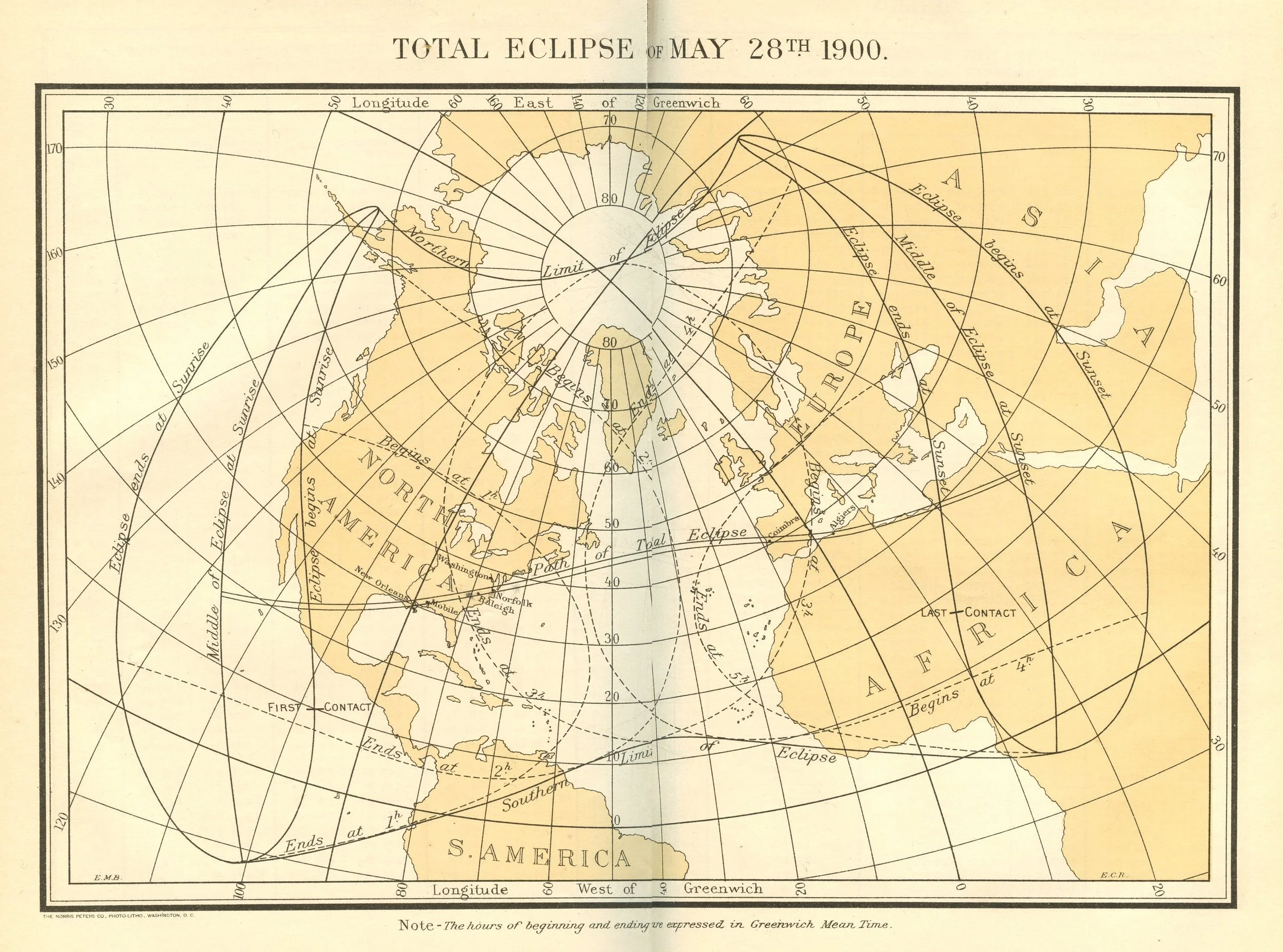 Nautical Almanac Circular 17, Wyman & Sons Path of the Moon's Shadow during the Solar Eclipse of May 27-28, 1900. Courtesy of Sheridan Williams