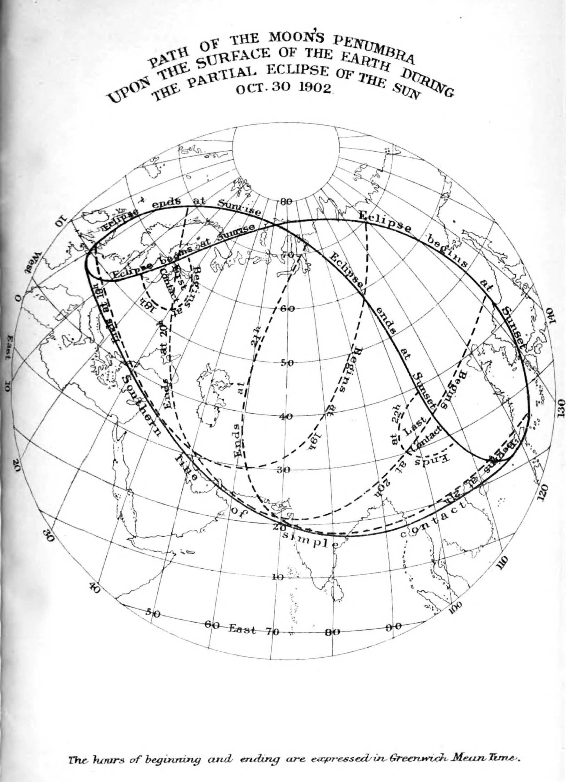 Nautical Almanac and Astronomical Ephemeris Path of the Moon's Penumbra upon the Surface of the Earth During the Partial Eclipse of the Sun Oct. 30 1902. books.google.com