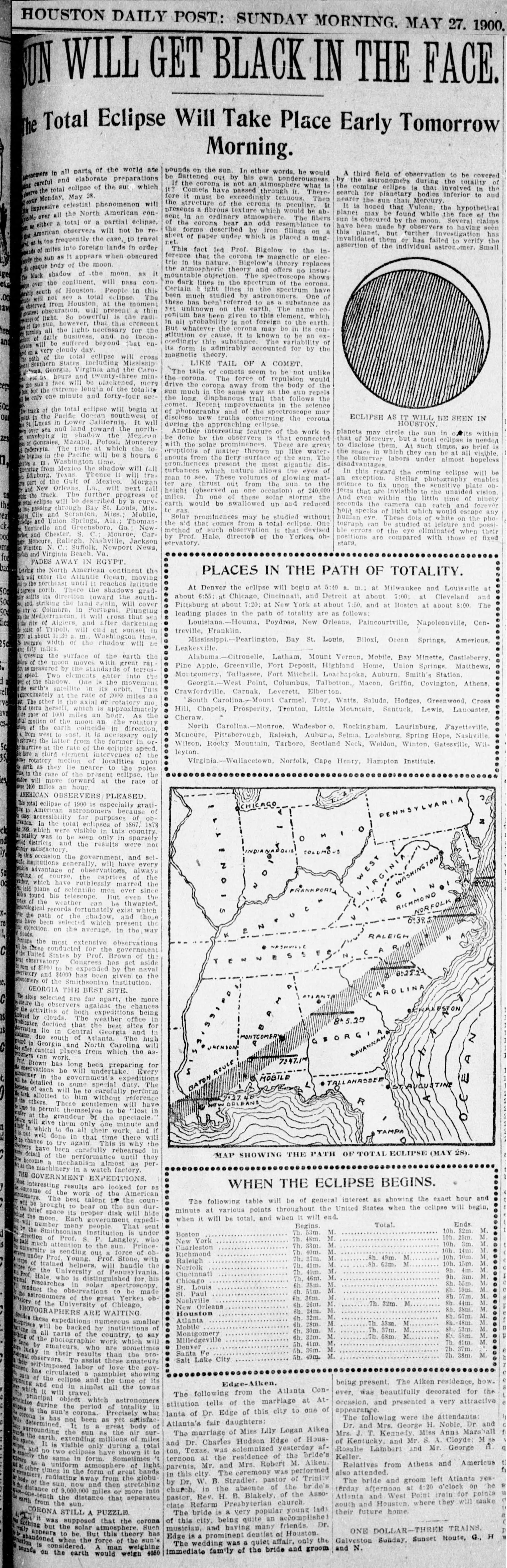 The Richmond Dispatch The Total Eclipse of the Sun, May 28, 1900 U.S. Library of Congress, chroniclingamerica.loc.gov
