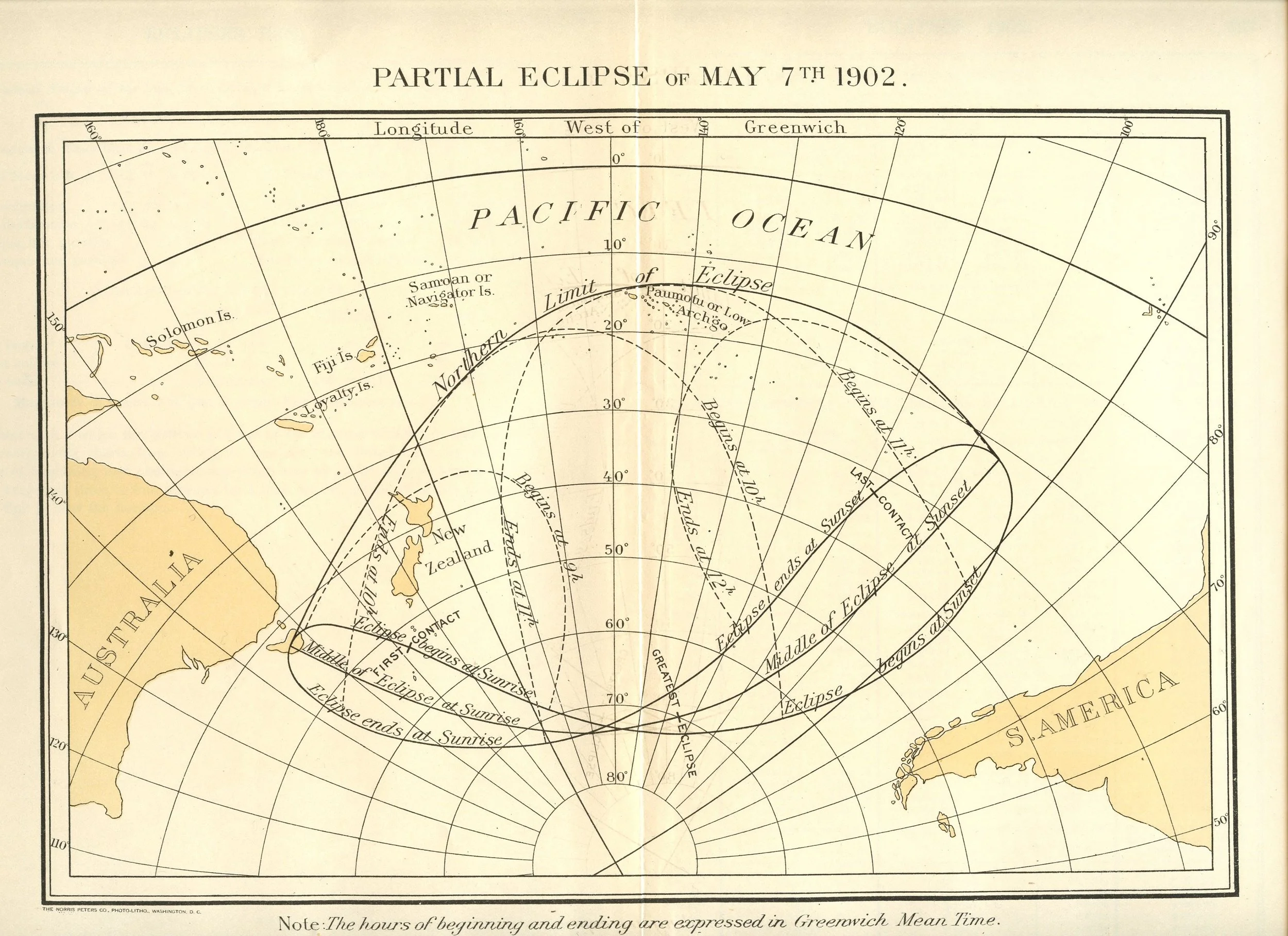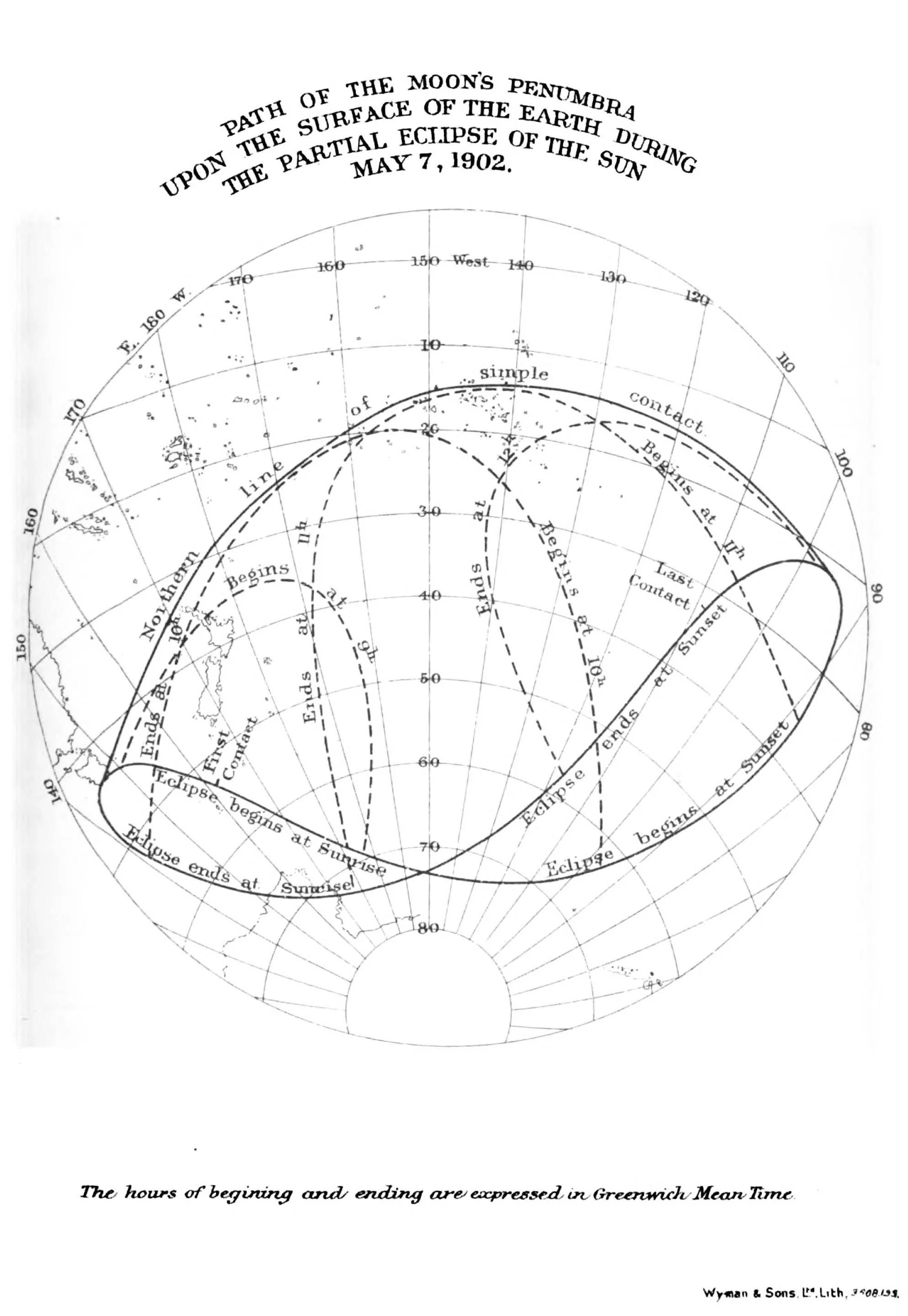 Nautical Almanac and Astronomical Ephemeris Path of the Moon's Penumbra Upon the Surface of the Earth During the Partial Solar Eclipse of Sun May 7, 1902 books.google.com