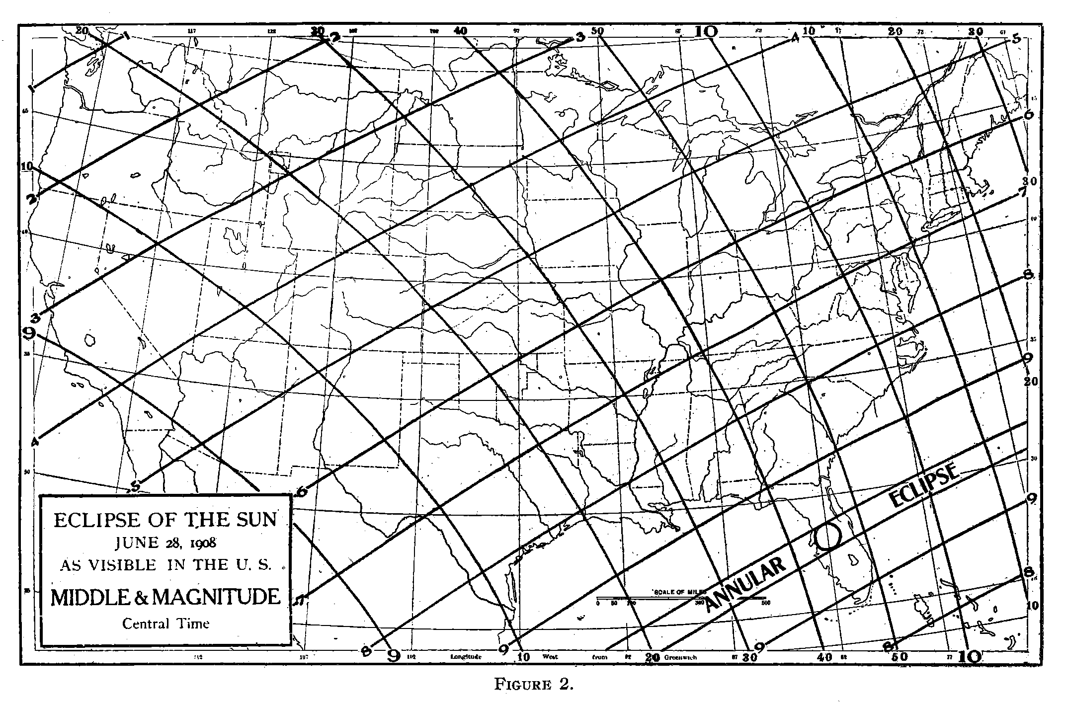 Maps of Solar Eclipses from 1905 to 1909