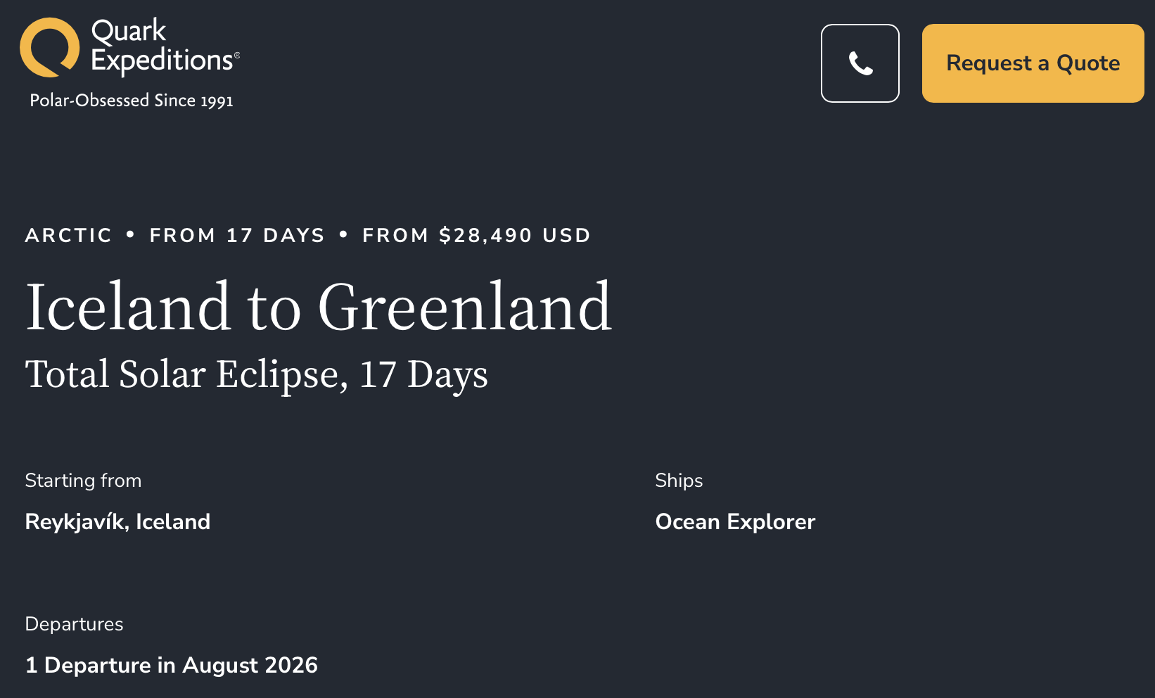 Quark Expeditions Michael Zeiler of EclipseAtlas.com will be the eclipse lecturer on an eclipse cruise to Greenland! Another Quark ship will have eclipse historian David Baron as a lecturer.