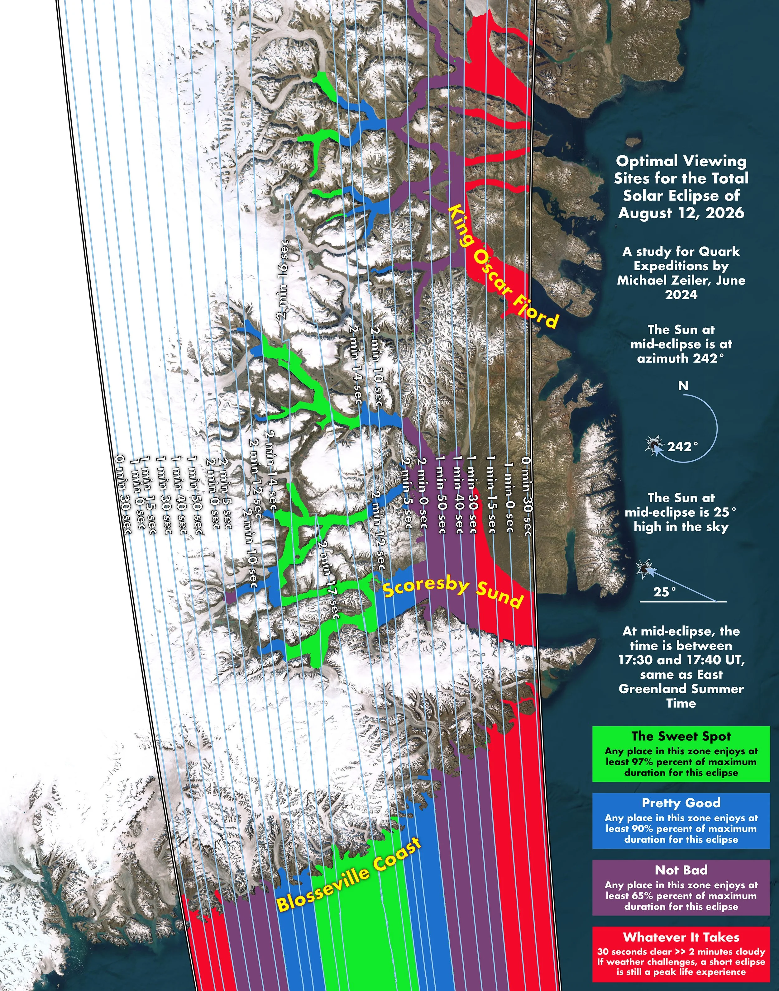 Analysis of optimal ship siting for Greenland fjords prepared for Quark Expeditions. Michael Zeiler will be the eclipse lecturer on the Ocean Explorer. For information, see the link at the bottom of this page.